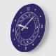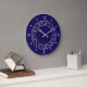 Here's a pretty clock that works well in a kitchen or living area. It features an ornate circle swirl and dot design in silver. The twelve, three, six and nine positions have matching silver numbers, while the remainder of the positions have silver diamonds. The image and numbers are placed on a dark royal blue background, but you can change the background colour, if you'd like, by choosing Customise It. This design looks great on black! Reminiscent of the 50's and 60's era!