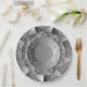 Paper party plates with elegant intricate designs in silver.