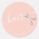 Modern and elegant design for hairstylists with faux silver scissors, blush pink texture and elegant calligraphy font.
