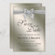 Elegant Silver Ribbon & Gemstone Save The Date features shiny silver background, silver ribbon bow , a sparkling silver stone,and a modern text template .The back side of the card has a name initials template . A perfect design that will match the wedding decor like modern,romantic, & luxury theme.Please click the personalise button to customise it with your own text .