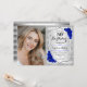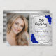 Elegant Silver Royal Blue Photo 50th Birthday Invitation