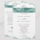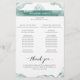 Welcome and delight your guests with this elegant and romantic Wedding program, distinctive by watercolor stains encasing your details in blue/green hues. Stunning watercolor stripe with fine hand drawn floral on the top, showcasing "welcome" phrase on the front and "Wedding party" on the back. Watercolors in a tasteful blend of silver sage, mist, eucalyptus and seafoam hues. Use of modern Calligraphy elements. Part of our "Silver Sage Watercolor" collection.