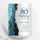 Elegant Silver Teal Agate 80th Birthday Invitation