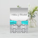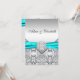 Elegant diamond, silver and teal blue wedding invitation.