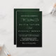 Simple Elegant and Chic wedding invitation with silver text and no decorations on a dark background of rustic green with shades.