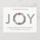 Elegant Silver Happy Holiday Corporate Holiday Card. Beautiful corporate holiday card in a beautiful silver color script fonts and Christmas Wreath. With a Christmas wreath and red poinsettia flowers. Customize it with your own message, and your company name.