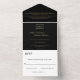 Elegant Simple Black And Gold Monogram Wedding All In One Invitation