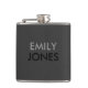 The flask itself is fine. It’s a cheap flask, obviously bought in bulk, however am prepared to overlook that. Given that it is a personalized item, I would have liked to have seen gift boxing instead of the generic packaging. Terrible printing, and/or quality. It’s a cheap, tacky vinyl. It is not cut straight and is also applied in a way that it is overhanging the bottom, causing the glue to catch on items and it will eventually roll and tear, damaging the wrap.