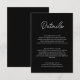 This elegant black and white wedding details enclosure card is perfect for a modern wedding. the simple design features elegant white calligraphy on a black background.