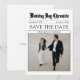 This flat card Save the Date, in the unique and beloved classic, vintage newspaper style will catch the attention of your guests. The elegant, old style calligraphy and simple, modern typography looks like a newspaper. It has a classic, regal, minimalist aesthetic and is almost entirely personalizable. Under the name of the newspaper are the wedding date and reminder that an invitation will be sent later. The front page headline reads, "Save the Date". Underneath it is one photograph and the caption is the first names of the groom and bride. You can include a QR code on the back side of the flat card if needed. Because it is minimalist, this design style is appropriate for a winter, spring, summer and fall wedding and depending on the customisable content, it can be formal, casual, sentimental, fun, funny or whatever you want it to be. This Save the Date can be sent by mail or as an instant download. See the Wedding Collection below for the beautiful options available to you. Congratulations from Home Together!
