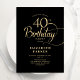 Elegant Simple Black Gold Script 40th Birthday Invitation