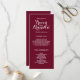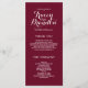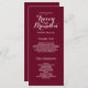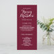 Elegant Wedding Programs. White text on burgundy background. Design by Elke Clarke © Available at www.zazzle.com/monogramgallery. Customise with your background colour and all your personal information to create a simple yet sophisticated program which your ushers can hand out as your guests enter the church or are seated where the ceremony will take place. It helps people follow along during the ceremony but also acts as a keepsake for your guests. You can use the template fields to fill in the suggested information about your wedding party and order of service and thank you message or select "customise it" and use the edit menu to change the text spacing, fonts, colours as you wish to create your own wedding programs.