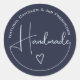 Elegant Simple Calligraphy Handmade Heart Blue Classic Round Sticker