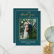 This simple and minimalistic photo thank you card features elegant gold script text with a heart between the words "thank you." You can personalise the design by adding the bride and groom's names, date, message to friends and family, and your favourite photo. This card is part of my Colourful Gold Tropical Lily Wedding Collection; please browse my collection for more matching wedding items. The card comes in four background colours: teal, blue, black, and white.