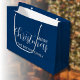 Elegant, simple, clean, Midnight Blue Christmas Gift Bag with white handwritten personalised stylish text.