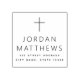 Elegant return address rubber stamp featuring a simple, thin Christian cross and your name and return address.