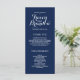 Elegant Wedding Programs. White text on navy blue background. Design by Elke Clarke © Available at www.zazzle.com/monogramgallery. Customise with your background colour and all your personal information to create a simple yet sophisticated program which your ushers can hand out as your guests enter the church or are seated where the ceremony will take place. It helps people follow along during the ceremony but also acts as a keepsake for your guests. You can use the template fields to fill in the suggested information about your wedding party and order of service and thank you message or select "customise it" and use the edit menu to change the text spacing, fonts, colours as you wish to create your own wedding programs.
