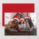 This is an elegant and simple family photo holiday card using a simple handwritten script font with the greeting “Happy Holidays”.