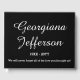 This elegant and simple guestbook design could be used to record fond memories of a recently deceased individual at his or her funeral or memorial service. It features a personalised name, birth/death years, and a loving message.