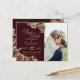Elegant Simple Gold Burgundy Floral Save the Date Announcement Postcard