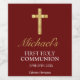 Offer your guests, friends, and family some wine in celebration of your child's First Holy Communion with these Elegant Gold Cross First Holy Communion Wine Labels. This design features a simple golden cross against a burgundy red background. Customise these Holy Communion labels with your child's name, the date of your event, and the type of wine or refreshment. Personalise the font and colour and change the text and date to suit your needs.