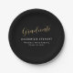 Elegant Simple Gold Script Graduation Black Paper Plate