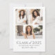 A simple and elegant boho-inspired graduation announcement featuring photo collages on both the front and back for a personalised touch. The front showcases three photos arranged in a clean collage format, framed by an elegant border with soft grey text beneath. "Class of 2025," the graduate's name, and school are displayed in understated, sophisticated fonts.