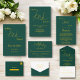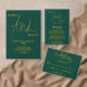 This elegant green and gold wedding invitation is perfect for a modern wedding. the simple design features elegant gold calligraphy on a green background.