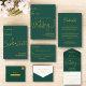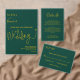 This elegant green and gold RSVP Card is perfect for a modern wedding. the simple design features elegant gold calligraphy on a green background.