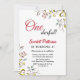 This elegant floral birthday invitation is perfect for a modern floral birthday. The simple design features watercolor red rose and green leaves with elegant black and red typography on a white background.