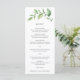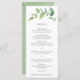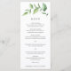Rustic wedding menu featuring a simple design with a green watercolor painted sprig with large leaves, over a white background. An elegant botanical design that is great for a summer wedding.