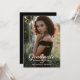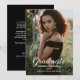 Elegant "Graduate" white script text overlay simple minimalist front photo design with coordinating white announcement message on back.