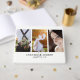 Personalised Elegant Photo Wedding Guest Book with black and white and grey monogram initial, bride and groom names and wedding date. There are 3 photos on the front and one larger photo on the back.