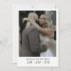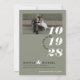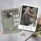 This elegant and simple sage green, black and white modern typography wedding save the date, features a cover photo with bride & groom names and wedding date, along with save the date half circle wording and modern design details, including large stacked wedding date and addition of wedding website on the back over a 2nd engagement photo and a beautiful solid sage green background. Personalise the wording for your big day, easily upload your photos! You may even edit / adjust placement of design components or change certain colours further (you may especially need to move the ampersand and names to adjust depending on the length of the names), by clicking the blue "Edit using design tool" button at the bottom of the "Personalise This Template" window, then navigate to the "layers" tab in the left hand column, select the front or back side layer, then click on the element you would like to change and make it your own - click "done" when finished. ♥ Custom design requests, colour backgrounds, and template questions are always welcome - click the "message" button or email: figandlilyco@gmail.com. Design is lovingly created by Fig and Lily Studios, and photo credit of our beautiful daughter's engagement on IG: @laurenmargaretphotography - thank you for being here with us! ♥