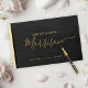 Simple chic gold calligraphy script bride and groom names wedding guest book with a modern luxury look on a black leather like background. +++++++++ Easy to personalise with couple's wedding details.