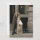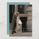This elegant and simple black, soft teal, and white modern typography wedding save the date, features a hero cover photo with bride & groom names, oversized script "and" in dusty teal, and spelled-out wedding date wording overlay, along with save the date half circle wording and modern design details, including wedding website, on the back over a beautiful solid soft dusty teal background. Personalise the wording for your big day, easily upload your photo! You may even edit / adjust placement of design components or change certain colours further, by clicking the blue "Edit using design tool" button at the bottom of the "Personalise" window, then navigate to the "layers" tab in the left hand column of the edit screen, select the front or back side layer, then click on the element you would like to change and make it your own ♥ Custom design requests and questions are always welcome - click the "message" button or email: figandlilyco@gmail.com. Photo is for placeholder purposes only, and must be replaced. Design is lovingly created by Fig and Lily Studios, and photo credit of our beautiful daughter's engagement/wedding: @laurenmargaretphotography