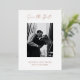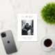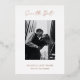 Modern wedding save the date card with a simple and minimal design featuring "save the date" in an elegant script typography above your vertical photo. Below are your names, date and city in a classic serif font. The back has a second picture along with your website. All text on the front is in real foil and the back is in black and white; both may be changed in the design editing tool.