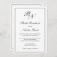 Traditional style All In One Wedding Invitation with a simple and classic design with your two initial monogram and your names in an elegant calligraphy inside of a thin border. The back has your guest details eliminating the need for a separate enclosure card. All design elements are in black and white and may be changed in the design editing tool. These elegant All In One Wedding Invitations are perfect for a formal wedding.