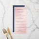 Elegant navy blue and blush wedding menu with a modern script font. Matching items available.