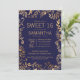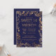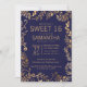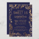 Elegant Simple Navy Blue Gold Floral Sweet 16 Invitation