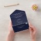 Elegant Simple Navy Blue White Modern Chic Wedding All In One Invitation