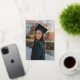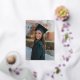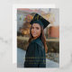 An Elegant Simple Script Photo Graduation Gold Foil Invitation with script font, full bleed portrait photo on the front with name, school, and class of year. The back has “Let’s Celebrate” with the graduate’s name and graduation party details.