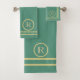 Elegant Simple Sophisticated Green Gold Monogram Bath Towel Set