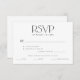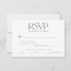 Simple modern formal classic black and white typography wedding response RSVP card with menu choice.