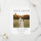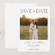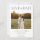 Modern trendy bold typography script black and white one photo wedding save the date card.