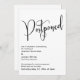 If you're in the position of needing to inform your wedding guests that you've had to change your big date, here is a bold option. In this piece, the modern, elaborate script font was used to create a simple graphic depicting the word "Postponed". Use the template fields to add your personal details and make this modern design your own. The white background can be changed to any colour you prefer. All layers were added separately and left unlocked to offer you the greatest amount of design control. Please reach out with any special requests or for customising assistance. // 32 //