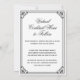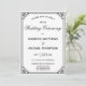 This customisable virtual long distance livestream wedding invitation features a black ornate frame on a white background. Just add your details to give it a custom feel and voila!