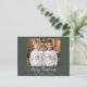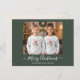 Share a warm holiday greeting with this elegant single-photo Christmas card, featuring a rich evergreen background, subtle gold speckles, and classic white holiday script.