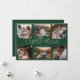 This Six photo Christmas Card features a background that is a muted green, creating a calm, festive atmosphere. "Merry Christmas" is displayed prominently in the centre, written in an elegant script font with a refined, silvery finish, though it lacks the foil shine of the previous version. This gives the card a more subtle, understated elegance.