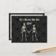 This Save the Date Postcard is decorated with elegant skeletons holding hands on a black spider damask pattern and is further accented with the romantic saying, Till Death Do Us Part, in classic off-white type, making it perfect for the Gothic or Halloween Inspired Wedding.
